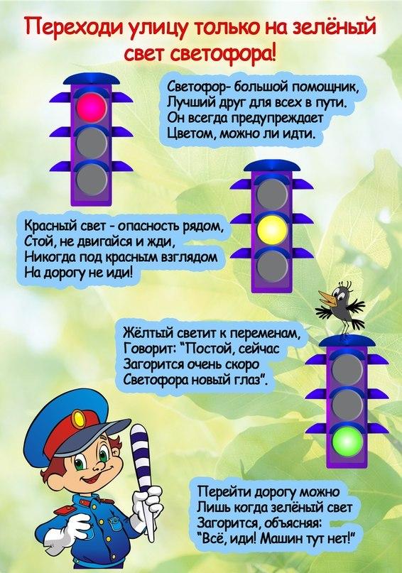* Начинайте переходить улицу только при зеленом свете светофора;