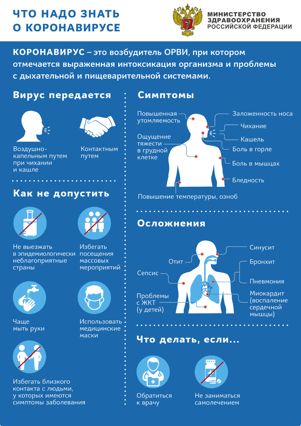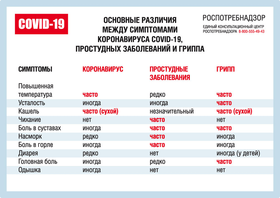 Помните, что в Северном полушарии сейчас сезон гриппа, и симптомы COVID-19 могут быть аналогичны симптомам гриппа или ОРВИ, которые встречаются намного чаще.