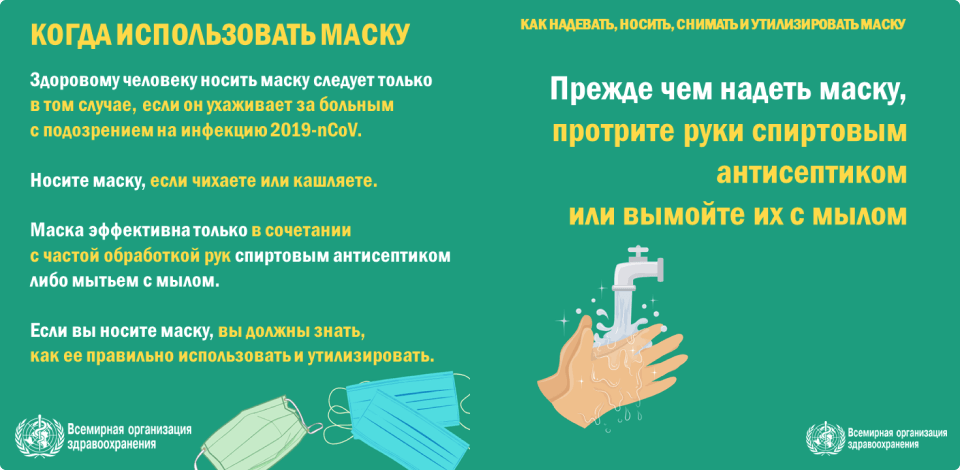 ВОЗ не рекомендует людям, у которых отсутствуют симптомы заболевания, носить медицинские маски, поскольку на данный момент свидетельств того, что систематическое использование медицинских масок здоровыми людьми позволяет предотвратить передачу вируса 2019-nCoV, нет. Неправильное и чрезмерное использование медицинских масок может привести к их серьезному дефициту, в результате чего масок будет не хватать тем, кому они действительно необходимы.