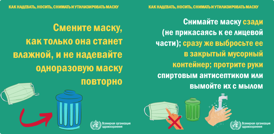 Носить маску следует только в том случае, если у вас есть симптомы COVID‑19 (особенно кашель) или если вы осуществляете уход за человеком, который может быть болен COVID‑19. Не забывайте, что одноразовые маски нельзя использовать повторно.