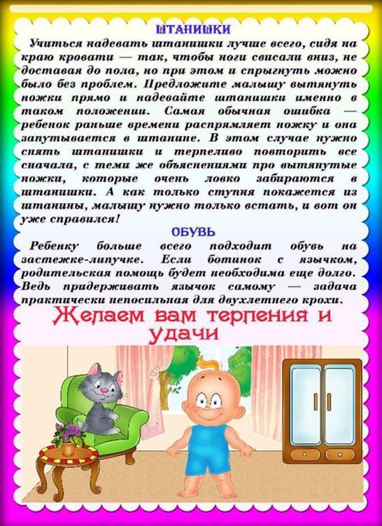Даже когда ребенок уже научился выполнять простейшие действия, одеваясь самостоятельно, взрослые не должны пускать этот процесс на самотек. Нужно максимально четко организовать его.