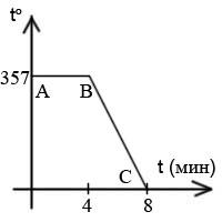 8. Дан график конденсации газа в жидкость. Чему соответствуют участки графика АВ и BС? Сколько времени длилась конденсация? Сколько времени длилось остывание вещества? Что это за вещество?