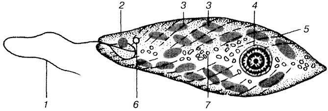 12. Жгутиковые имеют клеточный рот, продолжающийся глоткой, которая заканчивается в полости тела.