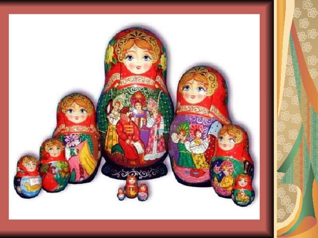 Суть русской матрёшки – дружба и любовь. Как посланница этих добрых чувств, она приходит в дом, излучая истинную русскую красоту, дарит всем радость, напоминает о широте русской души.
