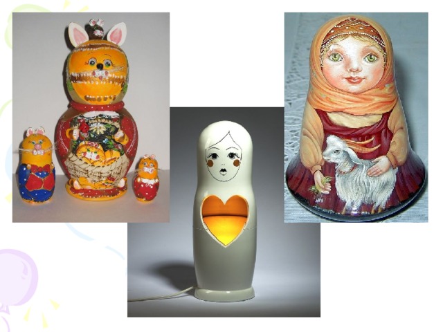 - 2) показать актуальность матрёшки как русского сувенира в современном искусстве.