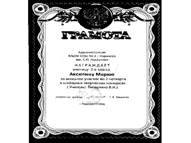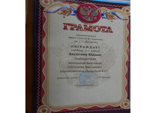 Аксютина Мария Руководитель: Пищулина Валентина Ивановна, учитель начальных классов. МБОУ СОШ №4 им. С.П.Лоскутова г. Карачев Брянской области. 2018-2019 г