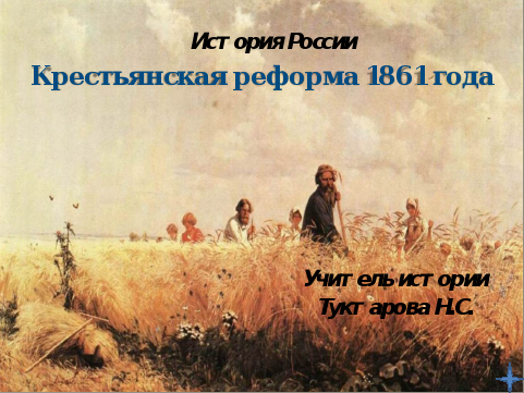 И сегодня мы узнаем о том, как эта реформа осуществлялась. Что получили крестьяне, а что потеряли помещики, и что выиграло все общество. Чьи надежды оправдались, а чьи нет? И какое значение имела эта реформа для будущего России? Нам предстоит анализировать исторические документы, сравнивать, делать выводы, вести дискуссию.