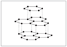 Структура графита совсем иная: он образован параллельными слоями, состоящими из атомов углерода, расположенных по углам правильных шестиугольников на расстоянии 1,42