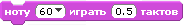 | Играть определенную ноту указанное количество времени (в секундах). Ноты записаны в цифрах, но против каждой цифры стоит ее звучание. |