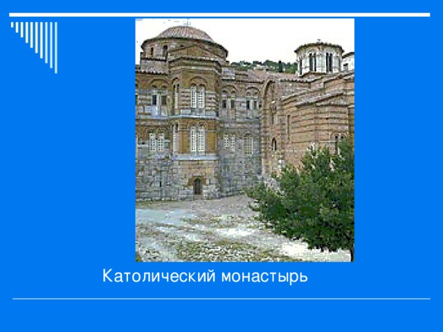 - Первые христианские монастыри Сев. Африки и Ближнего Востока имели облик крепостей. Четкая регулярная композиция отличает средневековые европейские католические монастыри, более свободная живописная планировка присуща православным монастырям Балканского п-ова, Малой и Передней Азии, Руси, Грузии, а также армянским монастырям.