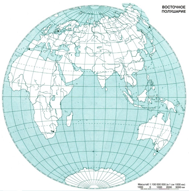 Задание 2. На контурной карте обозначить экватор, Северный полюс, Южный тропик.