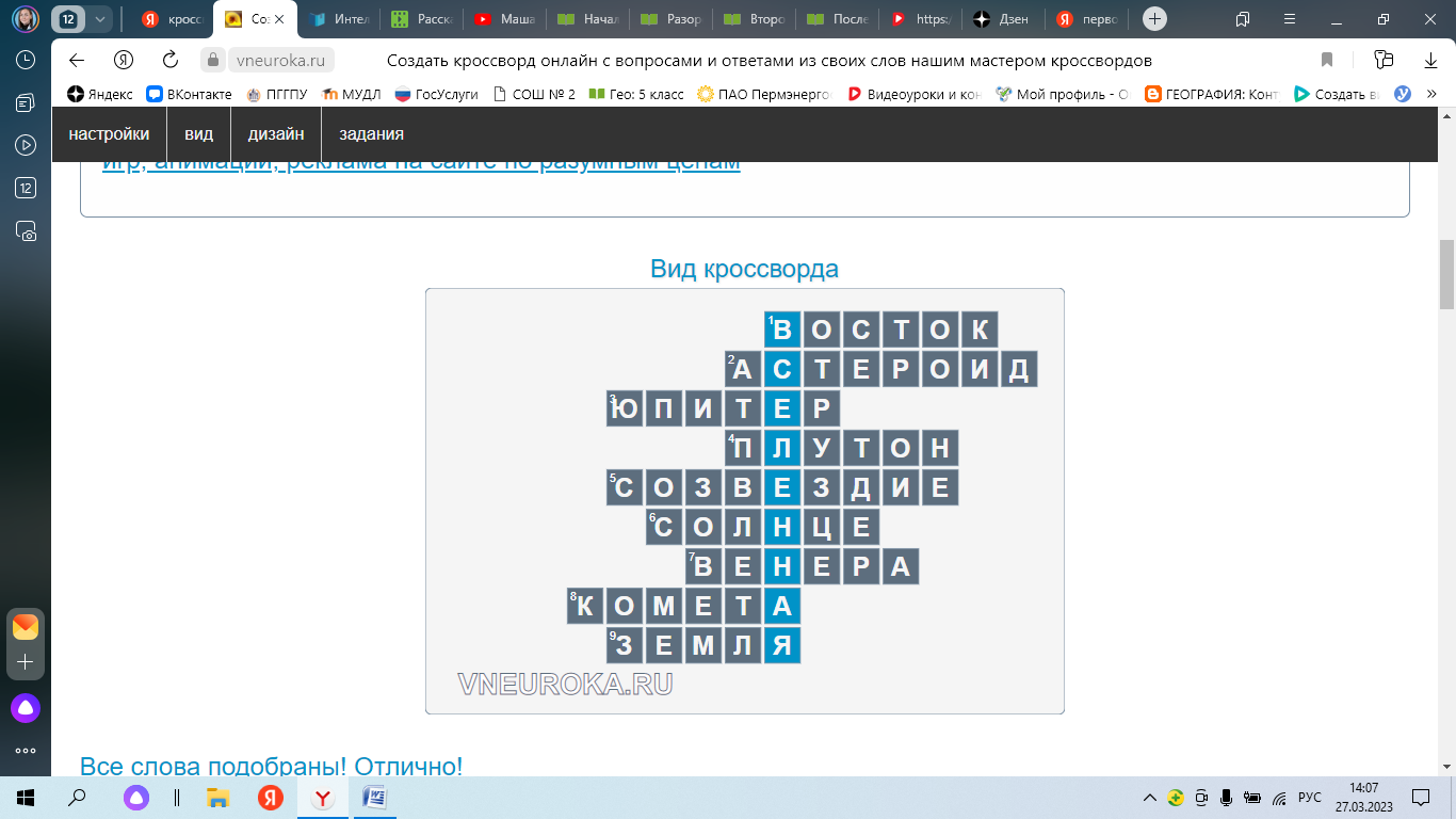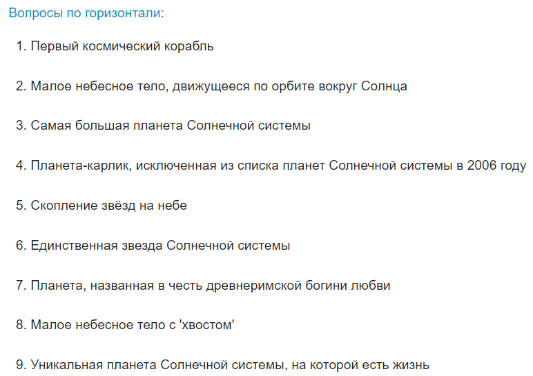 Задание: решить кроссворд на тему «Космос» и получить ключевое слово.
