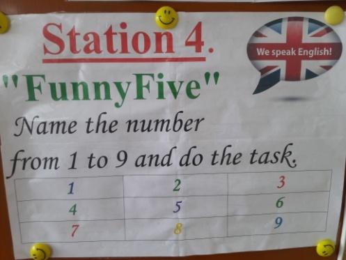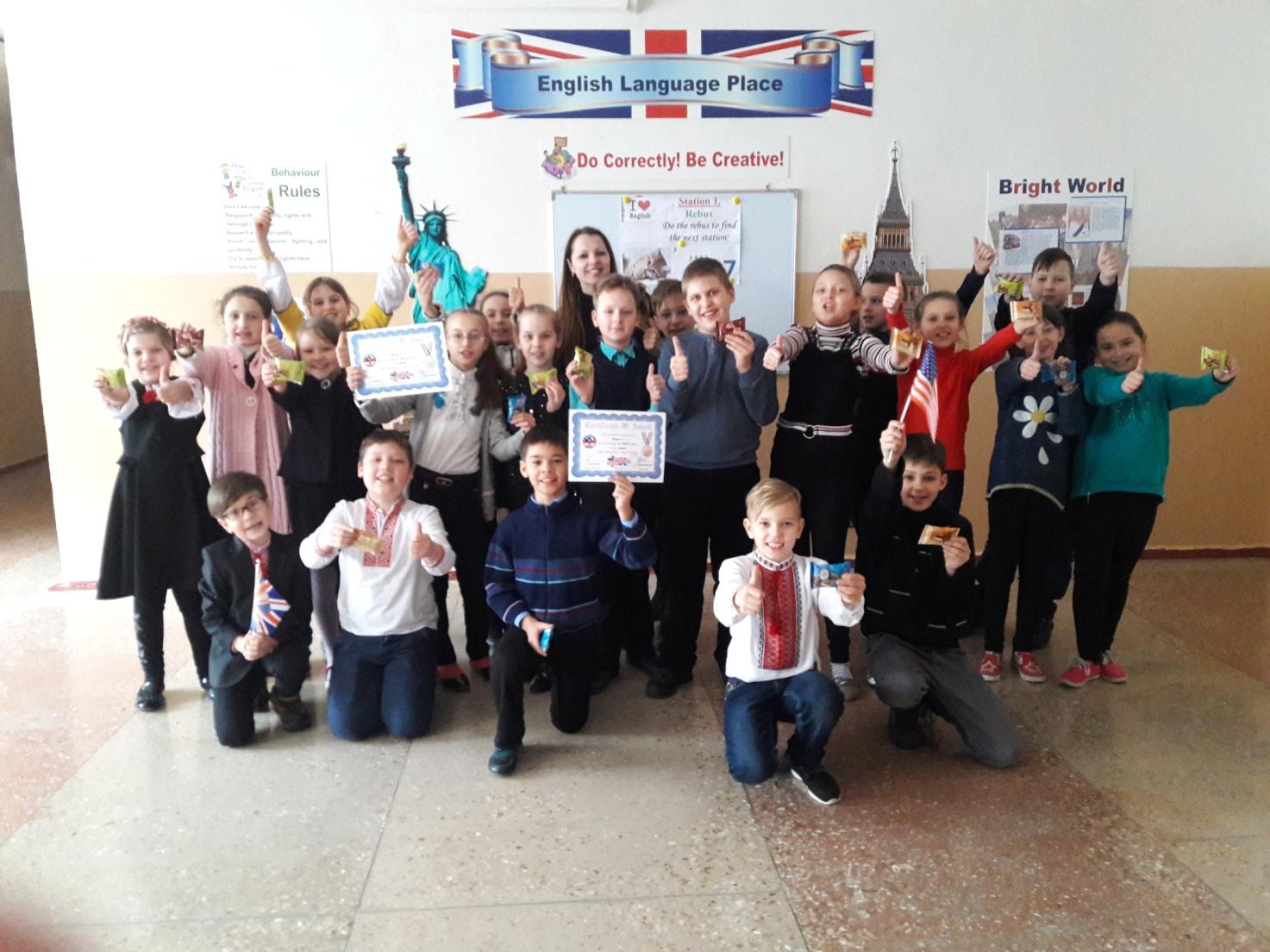 Команди проходять всі станції і повертаються на старт. Там виконавши завдання стаціїї повинні знайти Ірину Дмитрівну і сказати I love English. Хто це зробить перший, той і переможець.