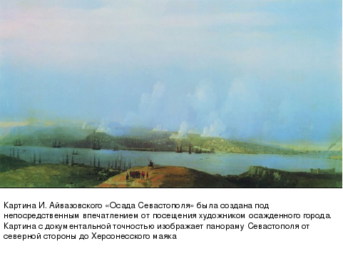 А вот каким показывает Севастополь художник Айвазовский. Его картина «Осада Севастополя» были создана под непосредственным впечатлением от посещения художником осажденного города.