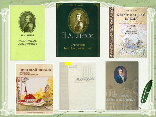 В этом году Львову исполняется 265 лет со дня рождения. Имя Н. А. Львова, нашего земляка, известно далеко не всем учащимся нашей школы. Его деятельность в первую очередь связана с архитектурой, а в других областях для нас он мало известен, поэтому есть необходимость поговорить о наследии Львова как об оригинальном художественном явлении русской культуры XVIII столетия.