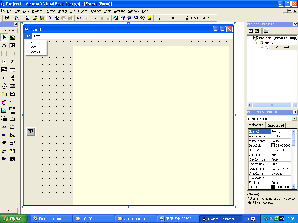Цель работы: Научиться сохранять проекты, выполненные Visual Basic 6.0.