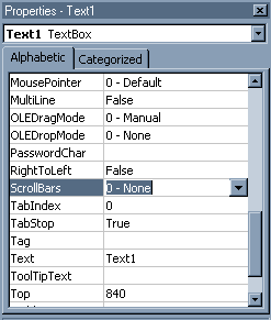 ScrollBars - 0-None - полоски скроллинга не выводятся;
