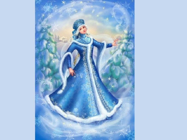 Пушкин А. Красавица-зима Идет волшебница-зима, Пришла, рассыпалась клоками, Повисла на суках дубов, Легла волнистыми коврами Среди полей вокруг холмов. Брега с недвижною рекою Сравняла пухлой пеленою; Блеснул мороз, и рады мы Проказам матушки-зимы.