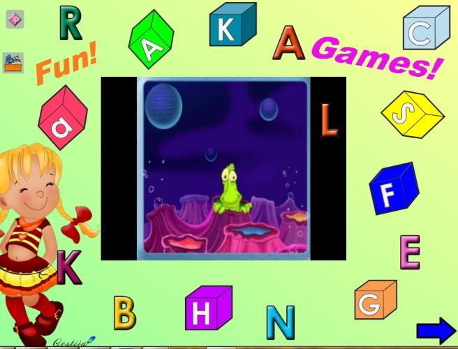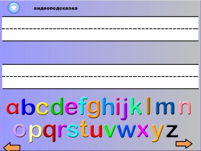 | Интерактивные возможности: использована возможность программы вставить звуковой видео фрагмент, иконка в левом вернем углу позволяет запустить учебную игру для закрепления алфавита. |