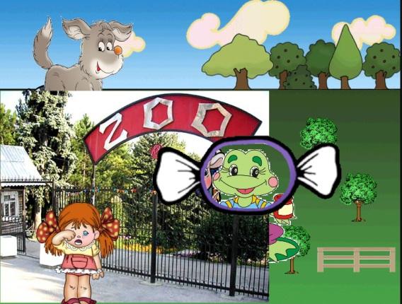 | Работа с лексикой по теме «Животными»: Pam приходит в зоопарк, но все животные убежали из клеток. При помощи волшебной конфеты Pam находит животных и выводит их на травку, называя каждого животного.