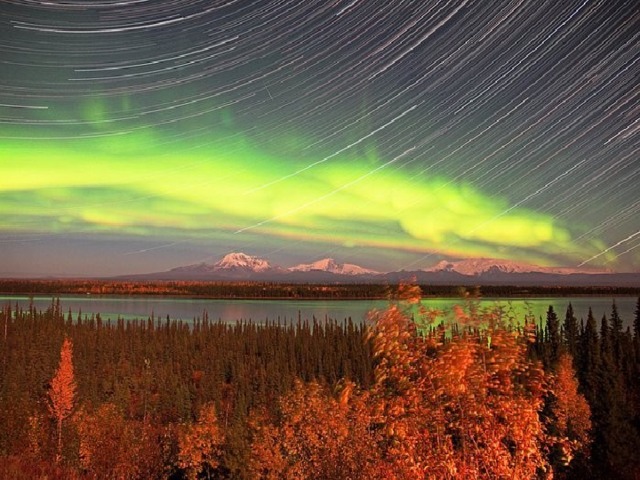 Иногда возникают удивительной красоты полярные сияния.
