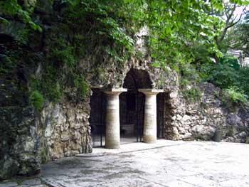 Мимо Пушкинских ванн поднимаемся к гроту Лермонтова на отроге Машука, на вершине этого же отрога находится беседка «Эолова арфа». Раньше в ней был установлен флюгер со струнами, издававшими мелодичные звуки.