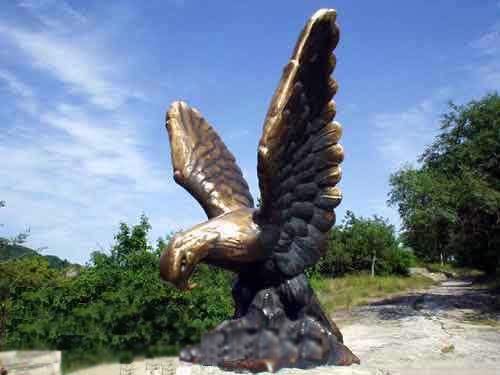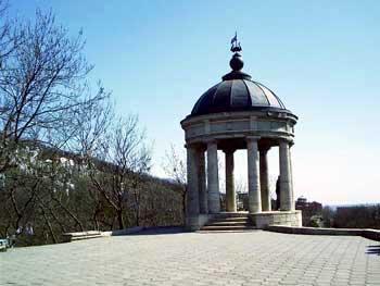 Миновав Лермонтовский источник, по каменным ступеням можно подняться к «Орлу», птице на каменном пьедестале. Отсюда, от горячего источника, уже с первых ступенек открывается прекрасный вид на пятиглавый Бештау, на темную мохнатую папаху Машука, на Пятигорск и на обширную, залитую солнцем, зеленую долину.