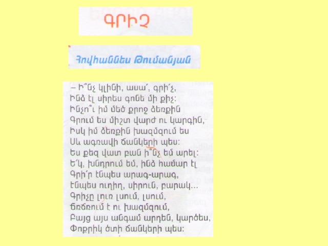«Գրիչ» բանաստեղծությունը սովորել անգիր: