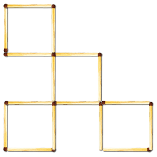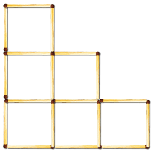 Восемнадцать спичек образовывают 6 одинаковых прилегающих друг к другу квадратов. Заберите 2 спички так, чтобы осталось 4 таких же квадрата.