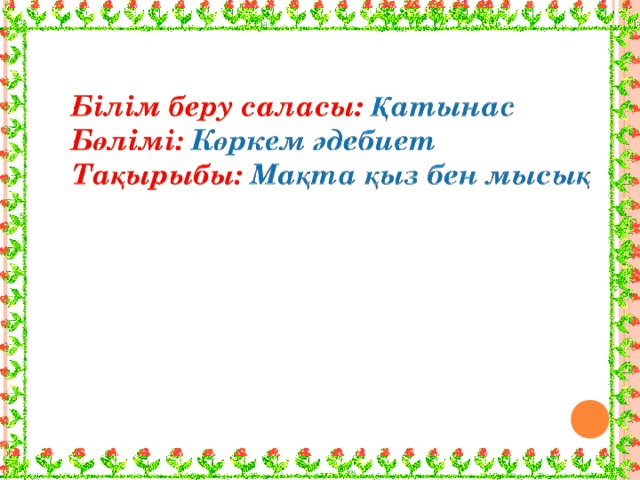3.Меңгерген дағдылары мен іскерлігі:Ертегі