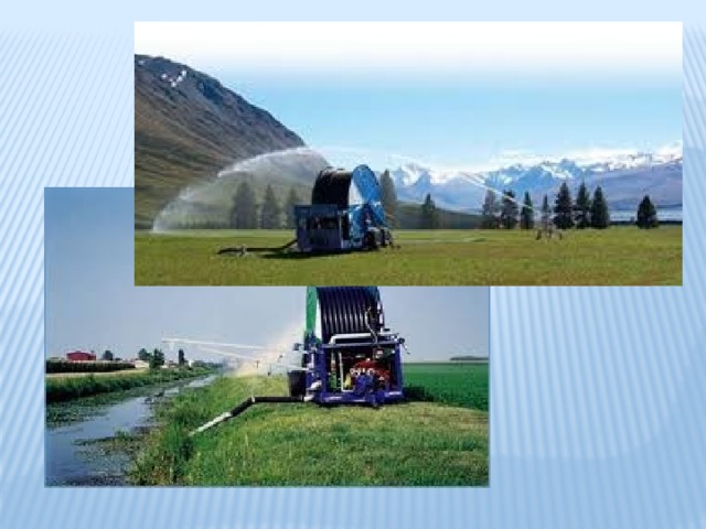 позиционно с забором воды из источника или открытой оросительной сети с расстояниями между каналами 90-100 м. Одновременно с поливом дождеванием вносить минеральные удобрения, которые загружают в бак-подкормщик перед началом полива.