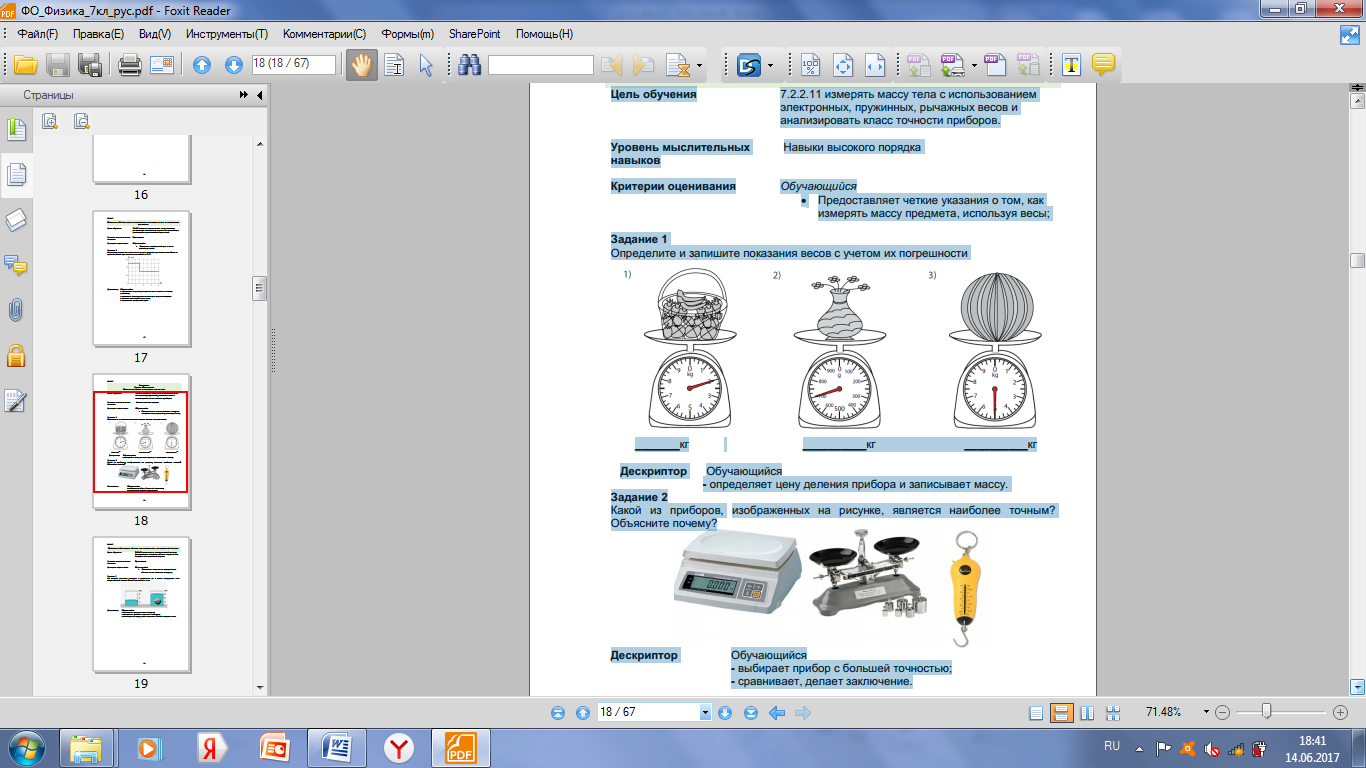 | Цели обучения, достигаемые на этом уроке | 7.2.2.11- измерять массу тела с использованием электронных, пружинных и рычажных весов | ||||||||||||||||||||||||||||||||||||||||||||||||||||||