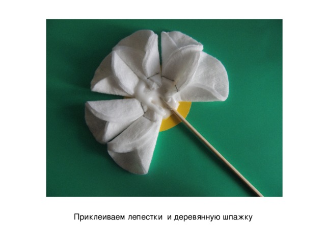 - заинтересовать и вовлечь в работу по изготовлению ромашки из ватных дисков;