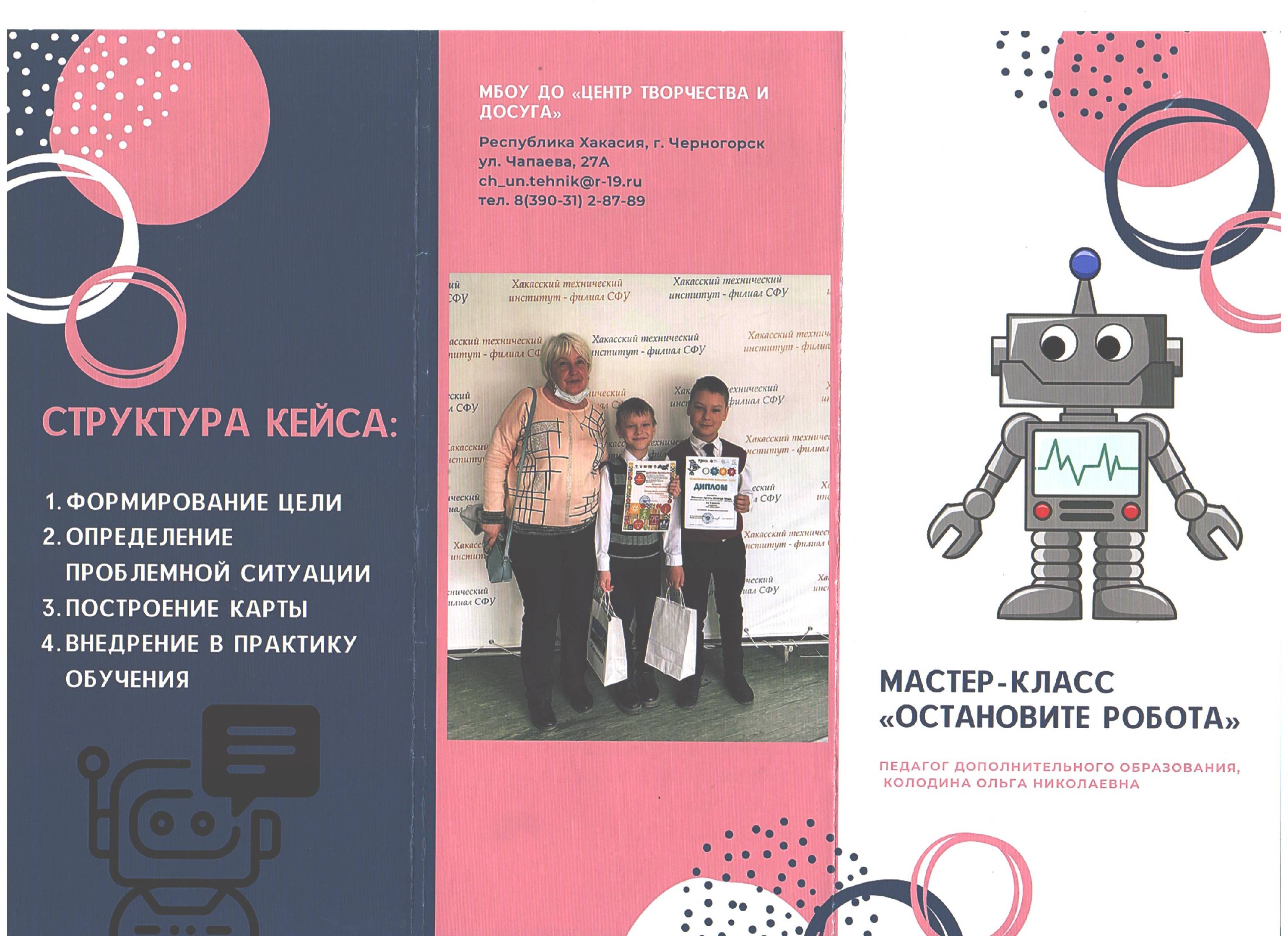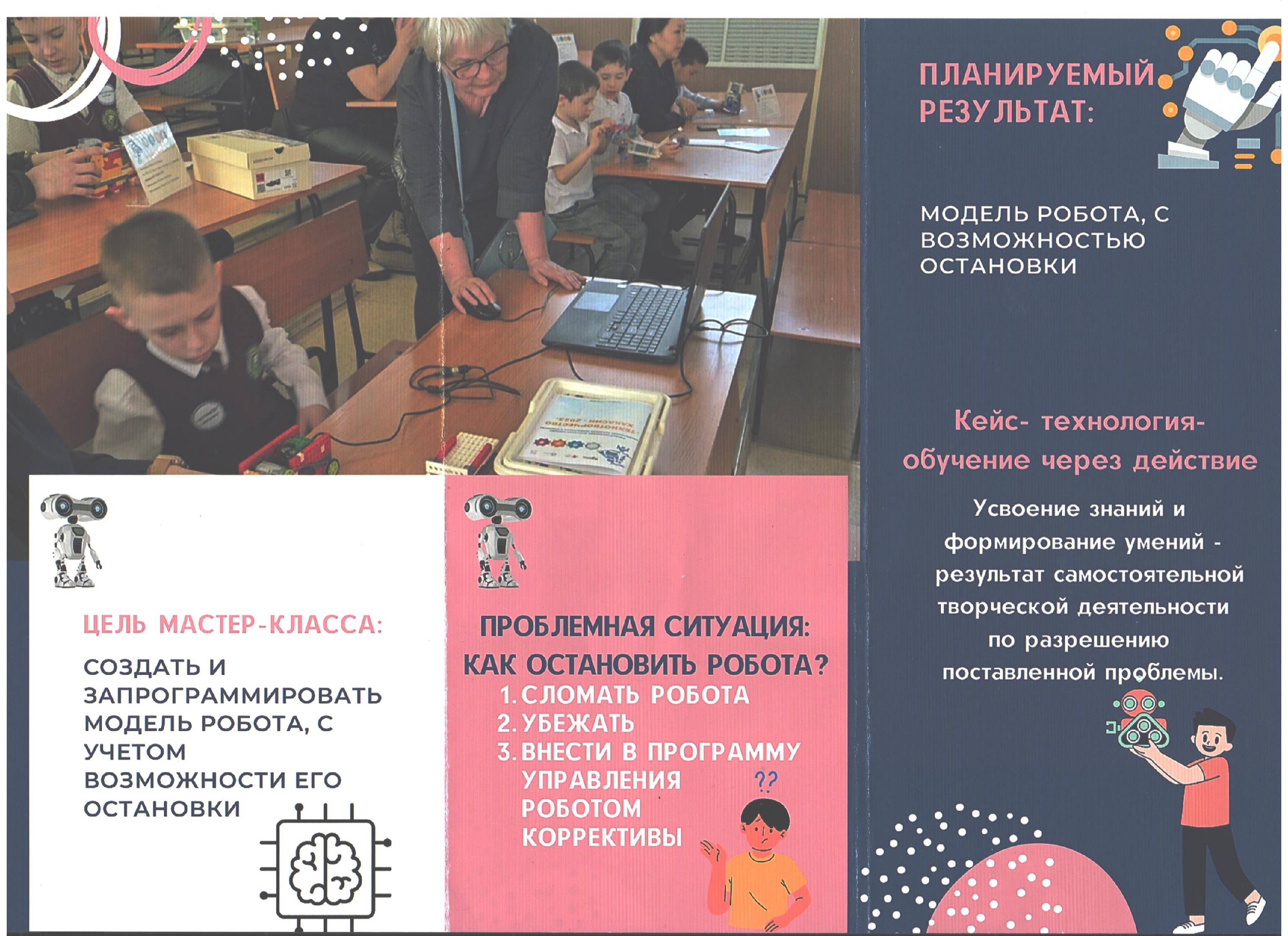 Мастер класс «Остановите робота» для обучающихся от 7 до 9 лет, представлен в рамках реализации ДООП «Роботоша»., с использованием ИКТ и кейс технологии, в основе которой лежит обучение действием. При этом усвоение знаний и формирование умений это результат активной самостоятельной творческой деятельности обучающихся по разрешению поставленной проблемы.