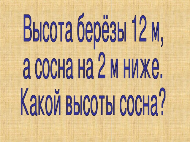 Высота берёзы 12 м, а сосна на 2 м ниже. Какой высоты сосна?