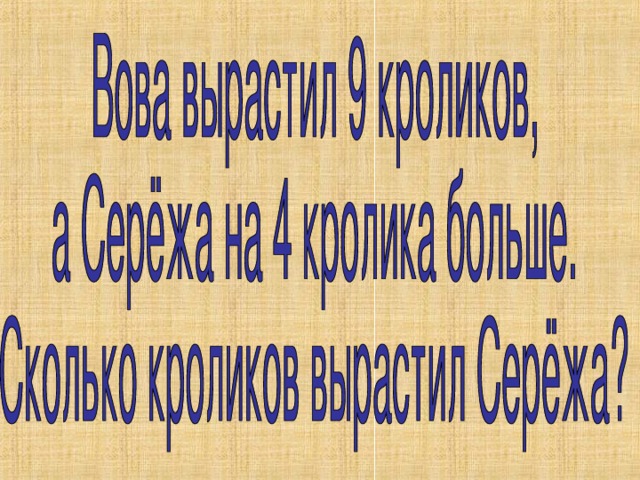 Вова вырастил 9 кроликов, а Серёжа на 4 кролика больше. Сколько кроликов вырастил Серёжа?