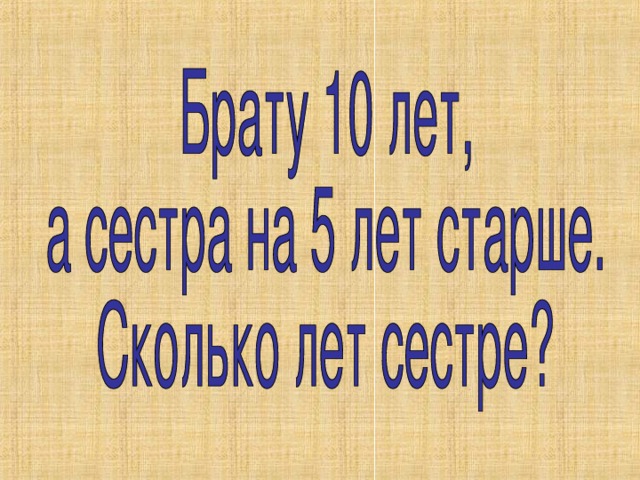 Брату 10 лет, а сестра на 5 лет старше. Сколько лет сестре?