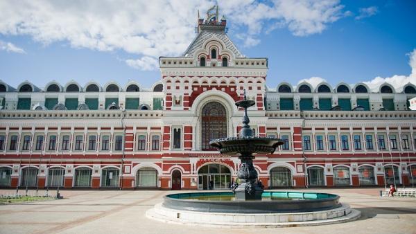 Нижегородская ярмарка действовала ежегодно в июле — августе. В 1818—1822гг. построен Гостиный двор из 60 двухэтажных строений. Главный торговый двор ярмарки был отстроен заново в 1890г. по проекту архитекторов К. Треймана, А. Фон - Гагена, и А. Трамбицким. В нем помещаются во время ярмарки квартира губернатора и его канцелярия, ярмарочная контора и комитет, отделение государственного банка и пр.