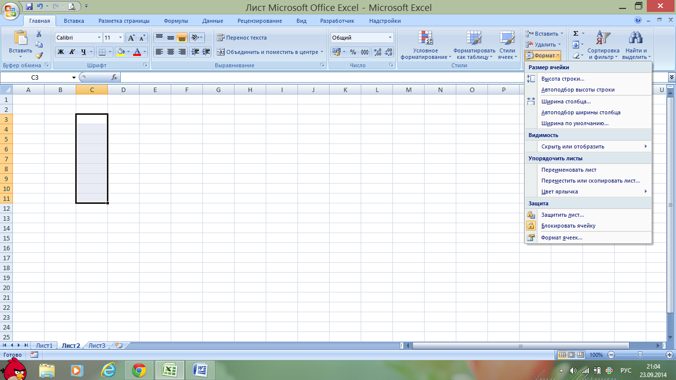 - Нажимаем ЛКМ на вкладку ФОРМАТ и снимаем выделение «замочка» Блокировать ячейку.