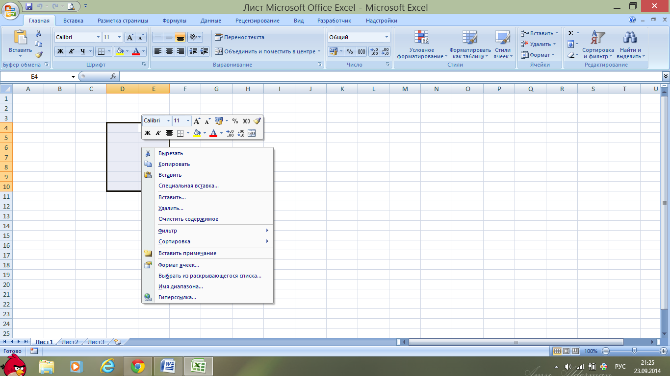 Через правую кнопку мыши: выделить диапазон. Кстати, можно разные диапазоны выделить одновременно, прижимая кнопку ctrl и выделяя нужные ячейки.
