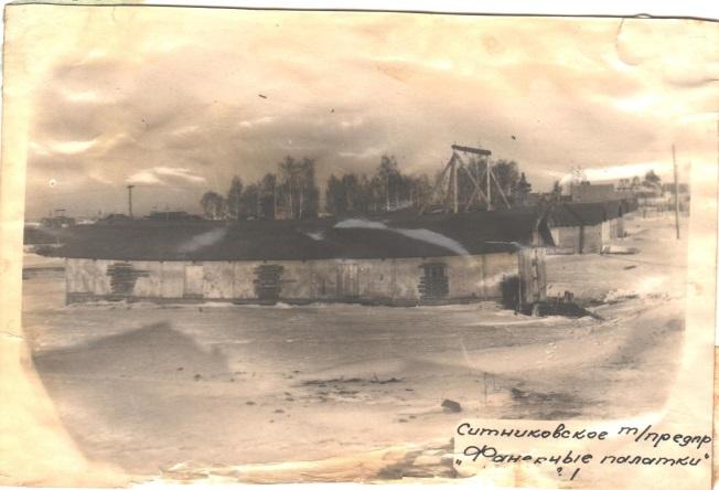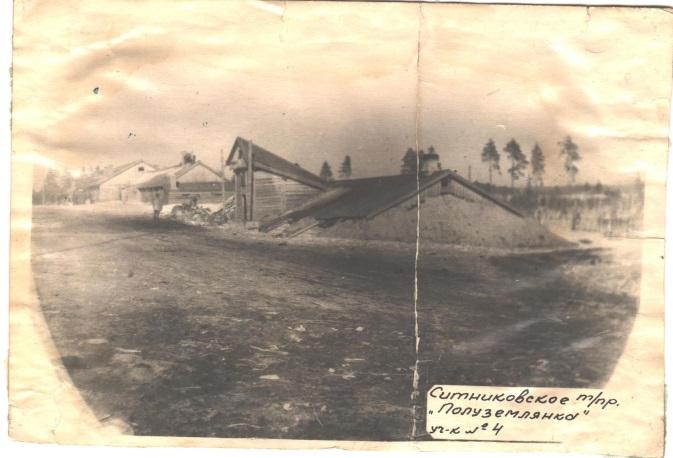 11. Фотография полуземлянок и фанерных палаток, где проживали торфяники и пленные немцы.. 1946 г.