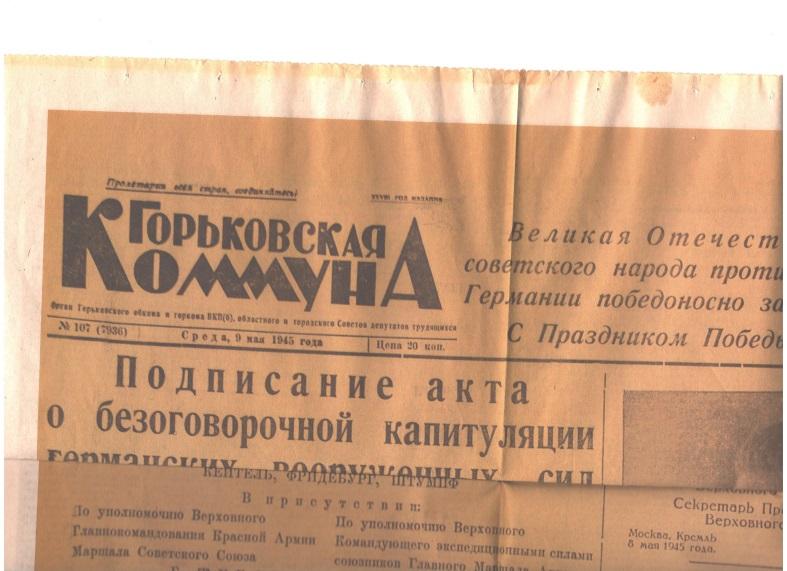 14. Газета «Горьковская Коммуна» от 9 Мая 1945 г.