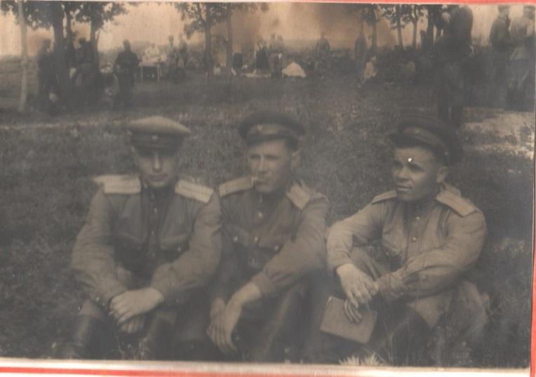 справа – налево Кириченко Ф.С., Краснюк Иван и Кочетов. 1944 г.