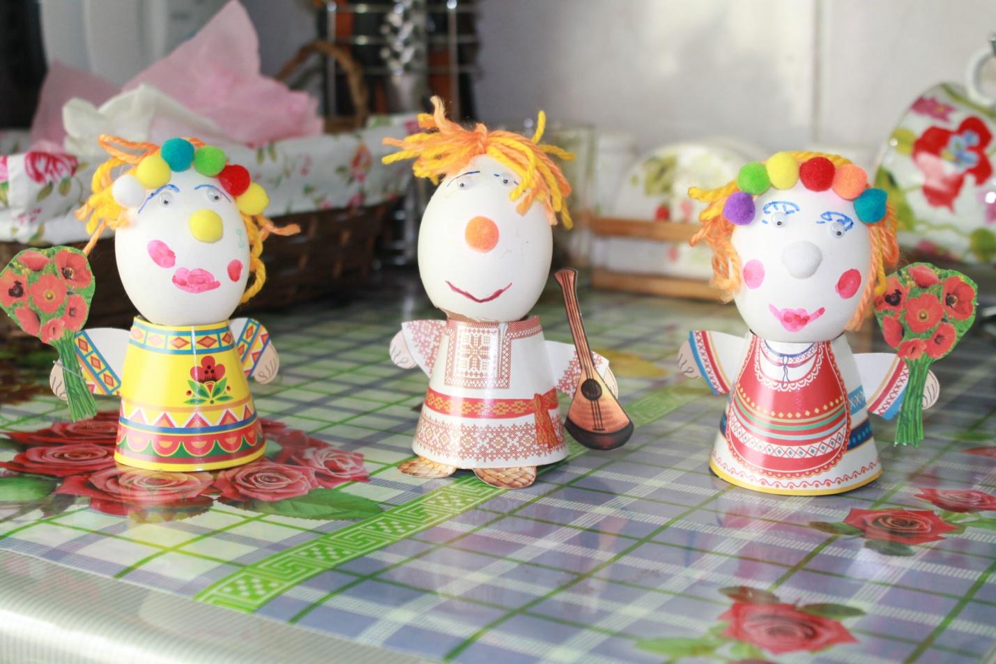 Также можно делать человечком с головками из скорлупок куриных яиц.