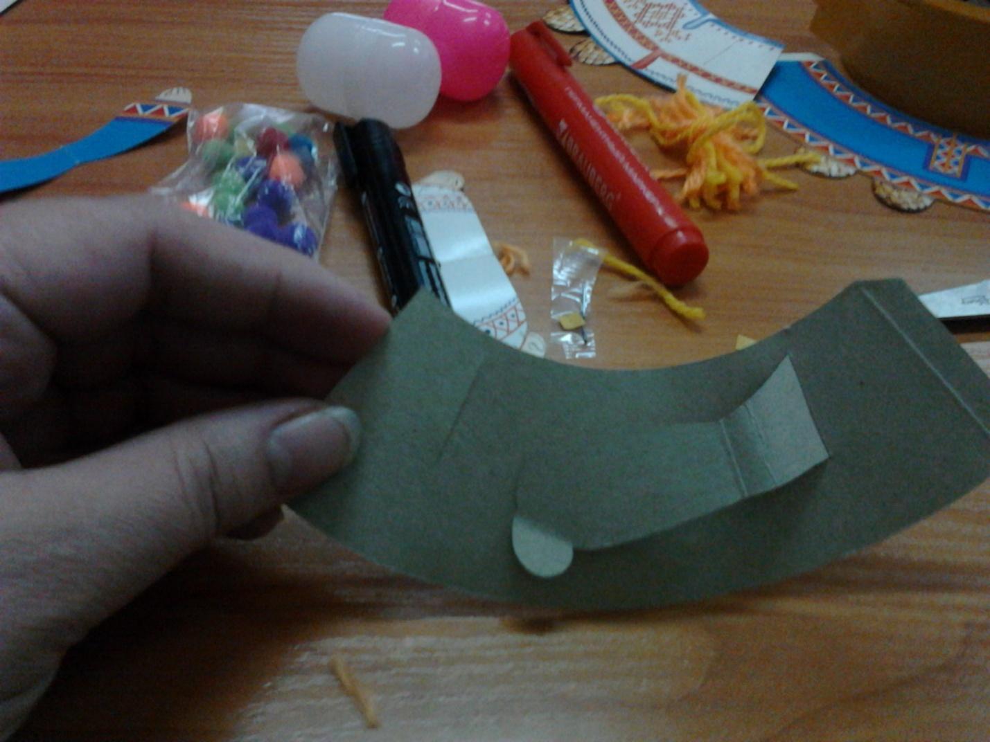 Теперь сделаем платье для нашей девушки. Для этого в вырезанную заранее заготовку в специальные прорези вставляем наши заранее вырезанные руки.