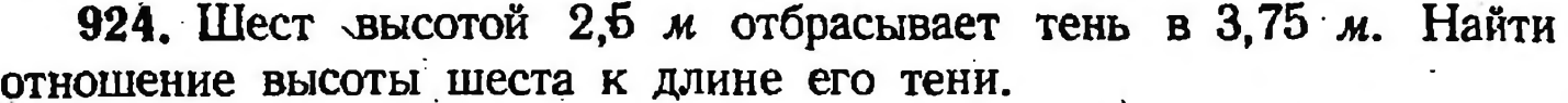 №2. Шест высотой 2,5 метра отбрасывает тень в 3,75 метра. Найти отношение высоты шеста к длине его тени.