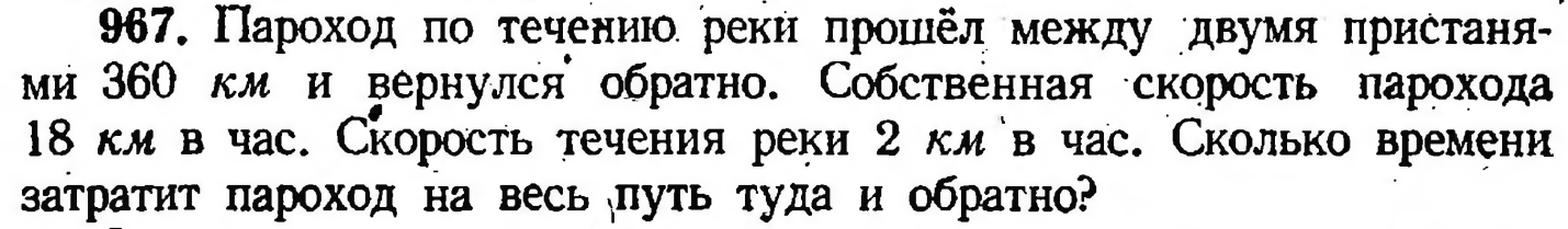 №3. Пароход по течению реки прошел между двумя пристанями 360 км и венулся обратно. Собственная скорость парохода 18 км в час. Скорость течения реки 2 км в час.