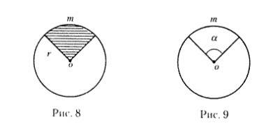 Всякая секущая (прямая линия) пересекает окружность в двух точках и делит ее на две дуги. Величина дуги окружности зависит от расстояния между центром и секущей и измеряется по замкнутой кривой от первой точки пересечения секущей с окружностью до второй.