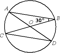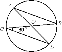 | 10.В окружности с центром в точке О проведены диаметры AD и BC, угол OCD равен 30°. Найдите величину угла OAB. |  |