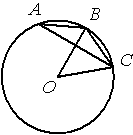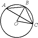 | 13. Точка О — центр окружности, ∠BOC=100° (см. рисунок). Найдите величину угла BAC (в градусах). |  |